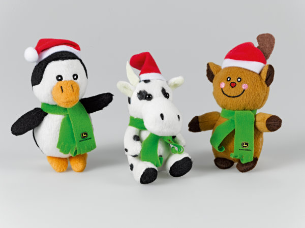 New for 2013 are a set of three soft toys – a reindeer, a cow and a penguin, each wearing a John Deere branded scarf and a Santa hat, and measuring around 10cm high. These join John Deere’s coveted advent calendar, featuring shiny machinery against a Jack Frost style background on the front and a selection of Christmas themed milk chocolate shapes inside.