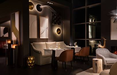 Every detail has been designed to create a warm, exclusive sensory experience. A new lounge area welcomes guests at the entrance while fresh flowers, raw wood tables, aged leather chairs and dramatic chandeliers set the tone inside.