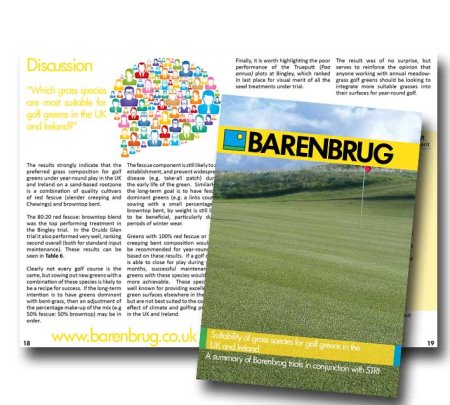 To request a copy of Barenbrug’s golf greens trials booklet, or to find out more, call 01359 272000 or email info@baruk.co.uk Alternatively, download a pdf of the booklet from www.barenbrug.co.uk