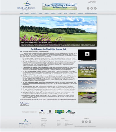 “We decided to revamp our web site to create a cleaner look and make it work more for us. Our previous site was good for carrying information on our projects and services however fell short in assisting us in generating viable business leads. Our new site does exactly that for us and we are already seeing a positive upturn in leads that we hope we can turn quickly into business,” said Braemar Golf’s Operations Director Michael Braidwood.
