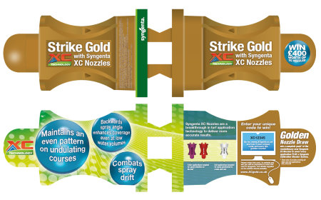 Greenkeepers and turf managers across the UK and Ireland should be on the lookout for a supersize Golden XC Nozzle promotion. The Golden Nozzle gives you the chance to win a full Syngenta application pack of XC Nozzles and calibration tools – worth over £400 each.