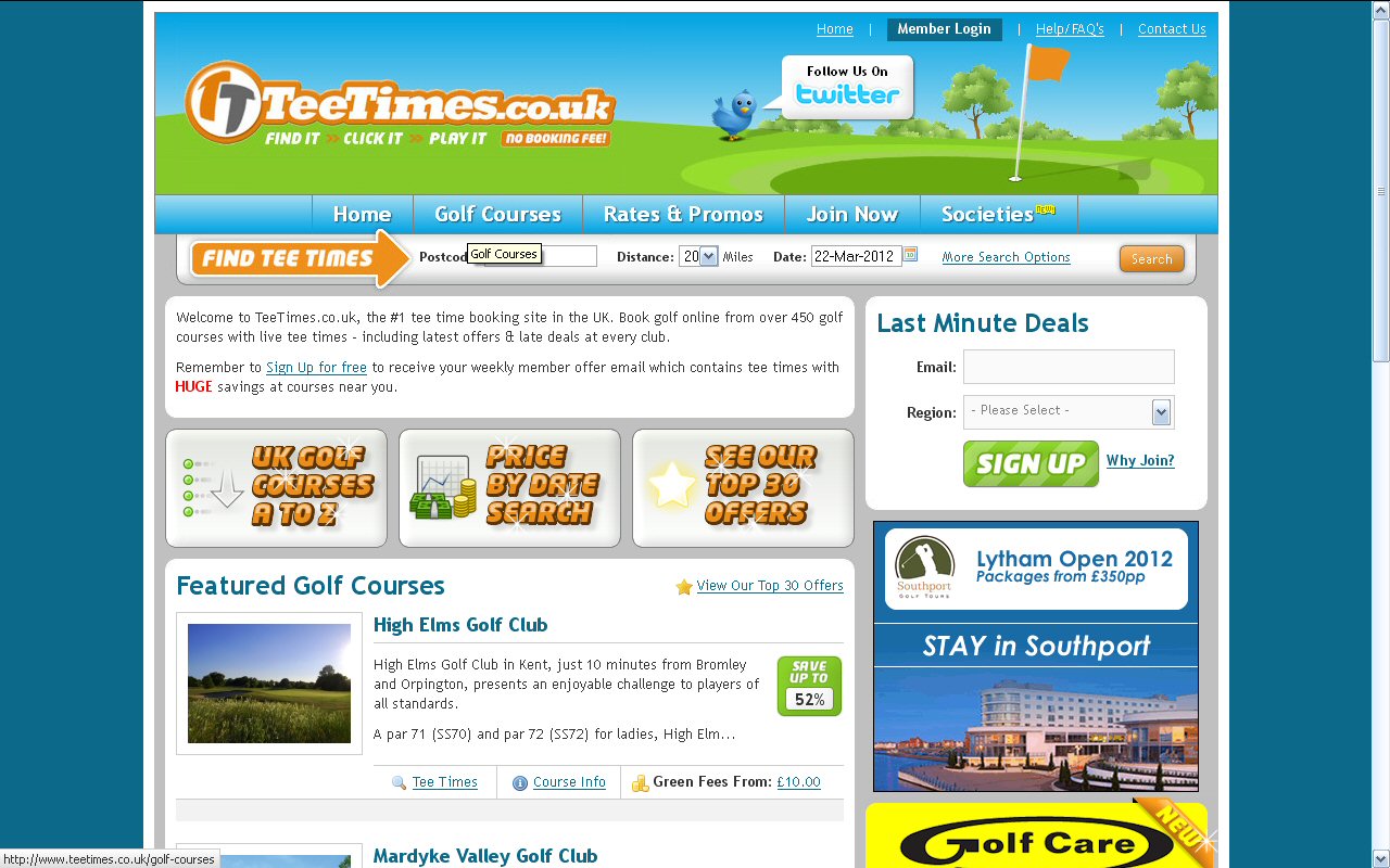 Online TeeTimes distributes thousands of tee times every year for clubs in the UK, Ireland and South Africa through its own websites and partner sites. Tee times are sold predominantly in the UK via www.teetimes.co.uk, via www.teetimes.ie in Ireland and via www.golfteetimes.co.za in South Africa.