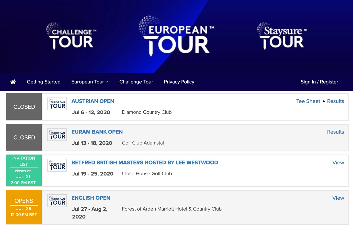 The Golf Genius software, which was launched at this month’s Austrian Open, replaces the need for on-site player registration and allows players to book pre-tournament practice rounds remotely – eliminating the need for face-to-face contact with event organisers.