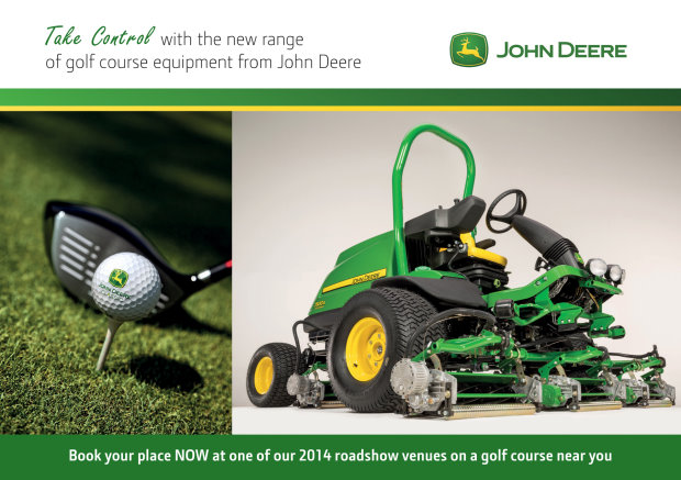 Free places at each John Deere Take Control 2014 Golf Roadshow event should be booked in advance by contacting your local John Deere professional golf & turf dealer, or the company direct on Freephone 0800 085 2522. The full list of venues is given below, or can be found here..