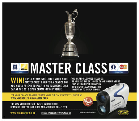 Beginning on 25th March and ending 30th May, any MasterCard cardholder who purchases a Nikon COOLSHOT Laser Rangefinder has the chance to win two spots to play in an exclusive golf day at the 2013 Open Championship venue, Muirfield on 20th June.