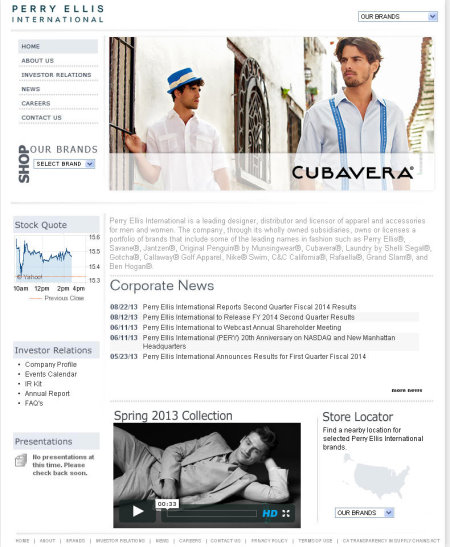 “The success of Perry Ellis International’s golf division emanates from our exceptional capability to offer quality, innovative products,” commented George Feldenkreis, chairman and chief executive officer of Perry Ellis International. “We are focused on meeting customer needs across a variety of product categories, and each brand under our golf portfolio represents a unique lifestyle, directed toward a defined consumer, which diversifies our opportunities for long-term growth.”