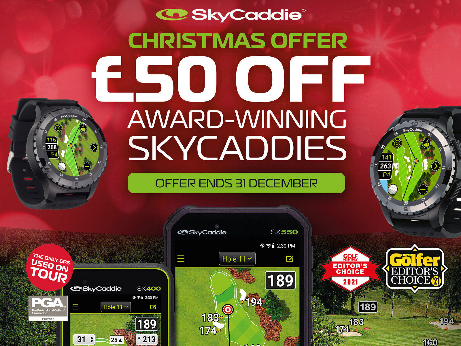 SkyCaddie is offering a special advertising-supported Christmas Promotion of £50 off its – award winning GPS range including the new SX550, the compact SX400 and the LX5 and LX5C GPS Smart Watches.