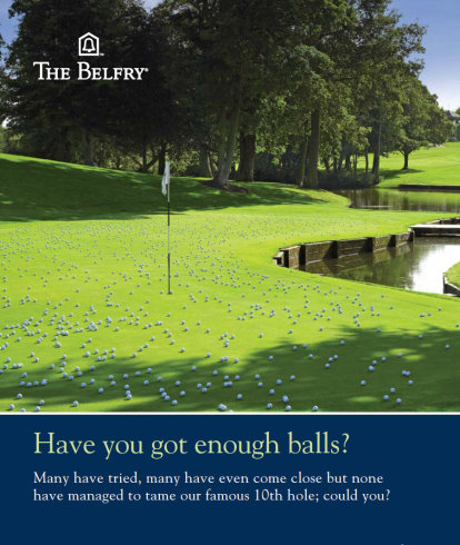 Examples of Clere Golf’s thought-provoking marketing collateral for The Belfry, designed to build upon the ‘leftfield’ nature of the brand, include ads featuring The Brabazon under moonlight (‘The course that never sleeps. Even when plays stops we don’t’), the 10th green saturated with golf balls (‘Have you got enough balls? Could you tame our 10th hole?’), a green covered with snooker balls (“A Break at The Belfry… a whole different ball
