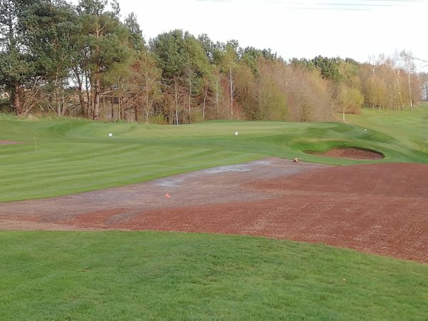The new green is about 450 m² with about 15% of the putting surface lost to improved contouring. A quite simple green when the pin is at the front and used for more everyday play but the slopes become a little more complicated when the pin is at the back, and used during weekends or competitions.