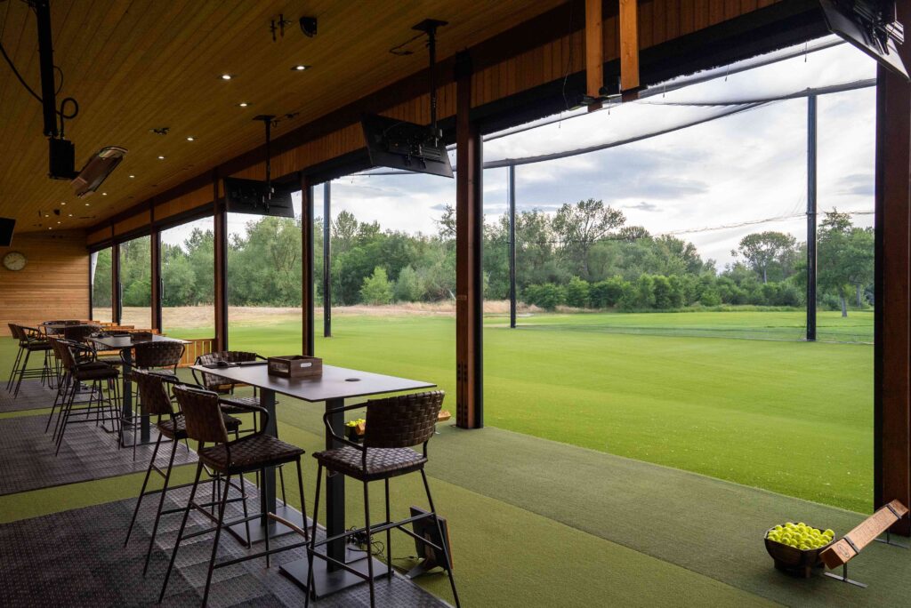 “In many markets with seasonal golf climates, it is far more important to have a good golf course than it is to sacrifice course quality to accommodate a practice range,” says architect Curley. “In these circumstances, driving ranges are becoming thing of the past. Golfers, especially younger players, are perfectly content to hit balls into a warm-up net with instant statistical feedback. Watch Tour professionals like Bryson de Chambeau practice nowadays: they don’t actually watch the ball flight. They make the swing and turn straight to their Trackman to get the information they need. If a practice facility/simulator center is well done, it can be a major positive amenity that allows members to be active year-round. The combination of a high-tech, fair-weather warm-up facility that serves as a Simulator building when weather is foul is a winning combination that provides members with the best possible golf experience year-round.”