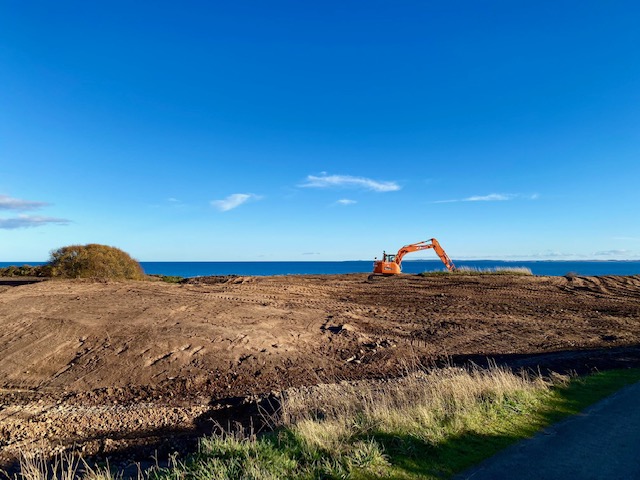 “Initially, we have had to do a lot of scraping, removing gorse and a layer of dead mulch over a 200-yard stretch, getting down to hard gravel on what was a raised beach. It will be replenished with sand and rootzone.