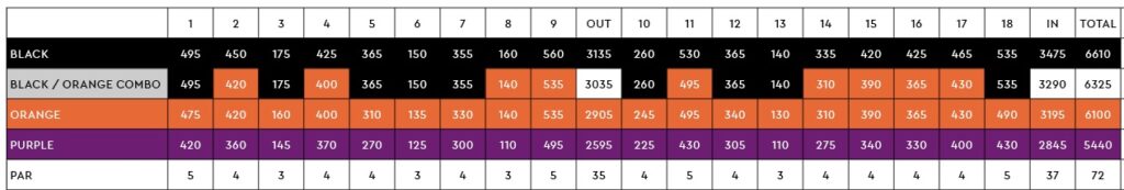 To ensure that the course is accessible to as many people as possible, The Inspiration has tee positions based on ability, with the forward Purple tees reducing the course to 5,440 yards and the middle Orange tees to 6,100 yards. There will also be an Orange/Black combination that plays at 6,325 yards.