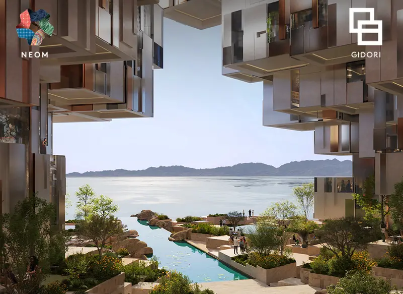 Designed by Ignacio Gomez and Lama Al Kharboush of Aedas, the beach-front development, called Gidori, will include 200 private villas and homes, plus an 80-room boutique hotel with restaurants, lounges shops, a beach club and a golf club with an 18-hole championship course, clubhouse and golf academy.