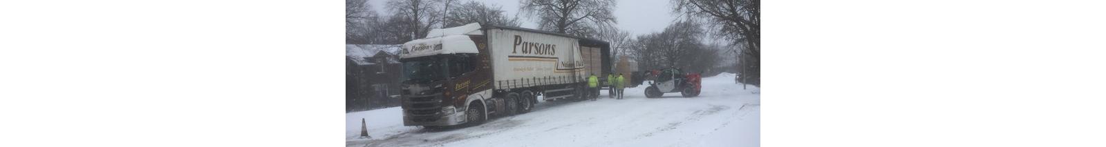 Battling through blizzard conditions and deep snow, the HGV load made it through to Airdrie Golf Club as the `Beast from the East` Arctic blast bit the country and its road networks hard.