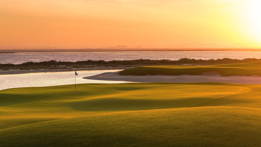 Designed by renowned golf course architect Brian Curley and managed by Golf Saudi, the par-72, 7,400-yard course offers a distinct coastal links experience that celebrates the island’s natural topography. Eighteen holes wind through native mangroves and sweeping dunes before drifting along the Red Sea shoreline in typical links fashion. The course was designed for minimal environmental interference, reflecting RSG’s regenerative tourism values.