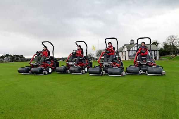 Half-a-dozen new Toro Greensmaster TriFlex Hybrid 3420 riding greensmowers are tending to leading Scottish links course Royal Dornoch.