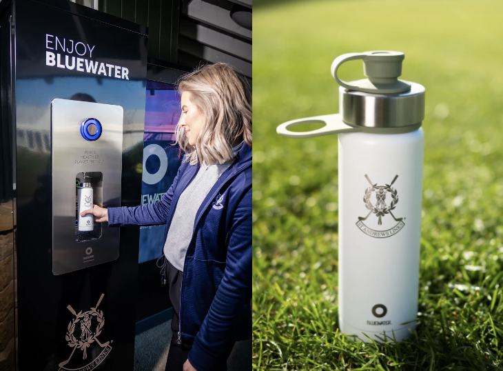 “We are all well aware of the terrible impacts single-use plastics cause to our environment, and so we are delighted to announce this new relationship with Bluewater, which will bring state-of-the-art and sustainable hydration solutions to St Andrews Links. Keeping our golfers and guests well hydrated out on the courses, and providing premium mineralized waters to complement our world-class dining experiences in restaurant service is a perfect and fitting solution for our estate, and our whole team is very excited to see this initiative launched.”