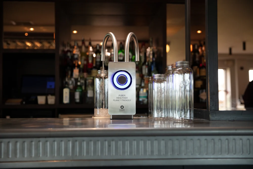 The water will be available still or sparkling versions and will be delivered in co-branded borosilicate glass bottles in 500ml and 1 litre options. The glass bottles are re-washed and re-used on-site to enhance the system’s sustainability credentials further while ending the need to transport water from distant locations along with continued cycles of glass recycling and re-ordering.