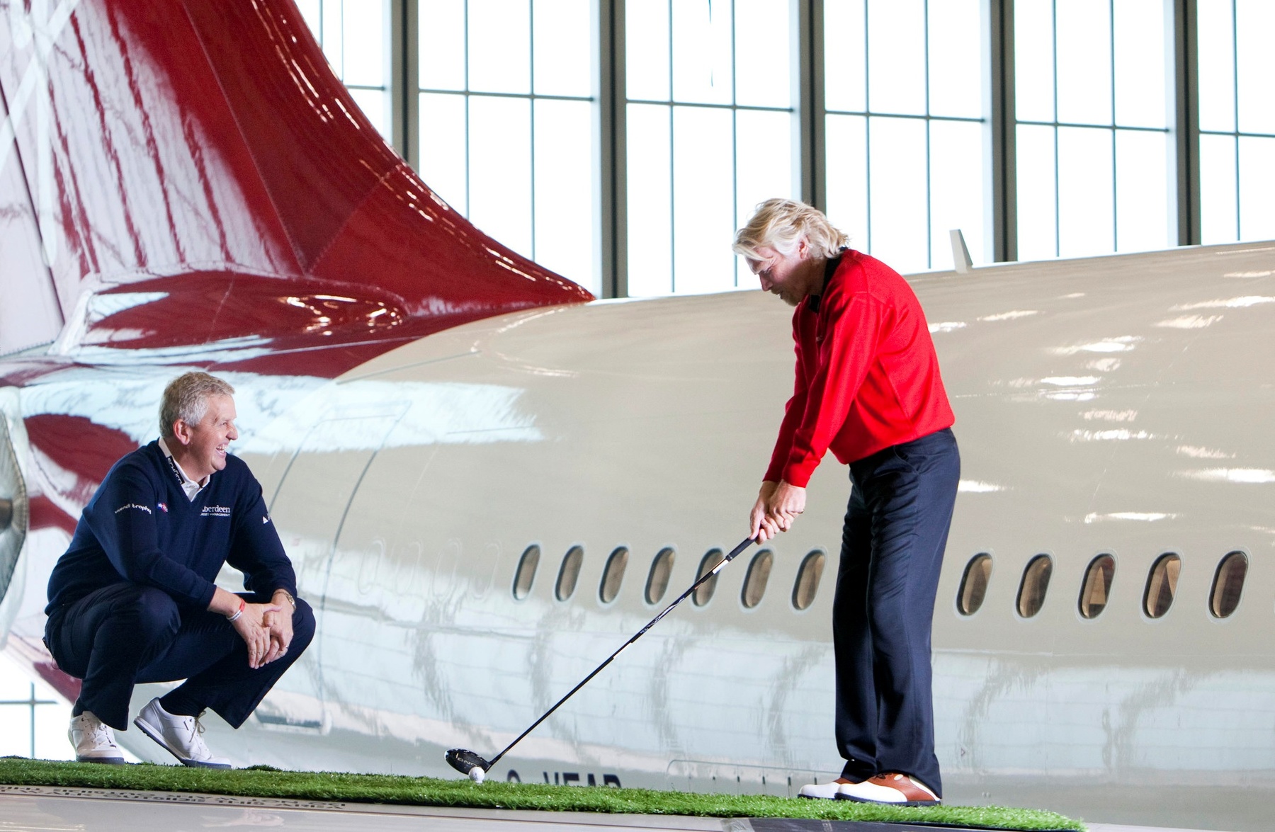 Sir Richard Branson is not known for doing things by halves and he lived up to his thrill-seeking reputation by celebrating Virgin Atlantic’s involvement in this year’s Golf Live show – with a golf lesson on the wing of one of his planes.