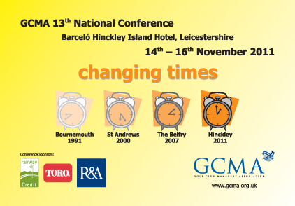 “Are you and your golf club affected by the current national financial situation? If so, you may find crucial information and help at the 2011 National Conference in November.” So says the preamble to this year’s GCMA biennial event to be held this year at Barcelo Hinckley Island Hotel, Leicestershire 14 – 16 November, and the programme so-far announced looks set to deliver on that claim.