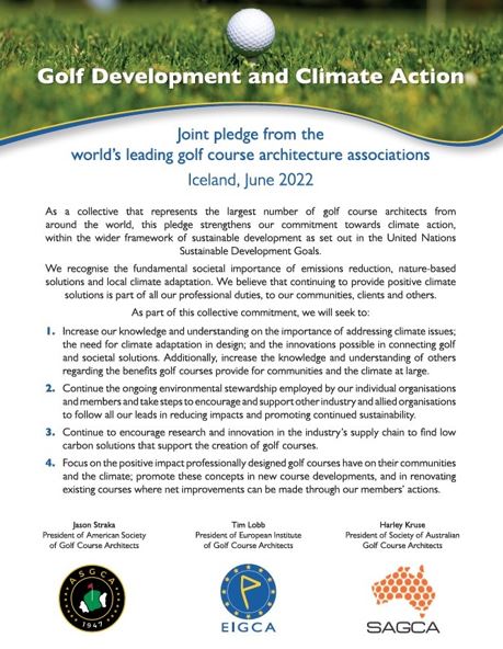 ASGCA President Jason Straka says: “I was thrilled to attend the conference and annual meeting in Iceland which covered many topics regarding climate change and how we as professional golf course architects can help to address it. I signed the pledge on behalf of ASGCA and our members, who continue our ongoing commitment towards climate action through conscientious design.”