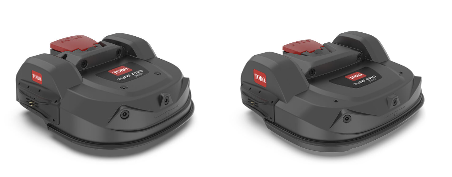 There are three fully robotic models in the Turf Pro range. There’s the choice of three or five cutting heads providing a cutting width of 63.3cm (25ins) in the Turf Pro 300 and 103.3cm (40.7ins) for the Turf Pro 500. They can mow up to 18.5 acres (75,000m2) and there’s a model for use on slopes of up to 24 degrees.