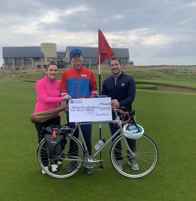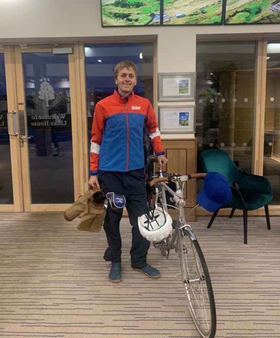 Luke is playing 252 Open Championship holes during an 831-mile bike journey around Britain. The odyssey started at Carnoustie Golf Links in Scotland this morning (18 October) and will end in 10 days at Royal St George’s Golf Club in Kent. Supported by friends of the Golf Foundation, he hopes to play each 18 holes with a mix of junior players, top amateurs, professionals and club members.