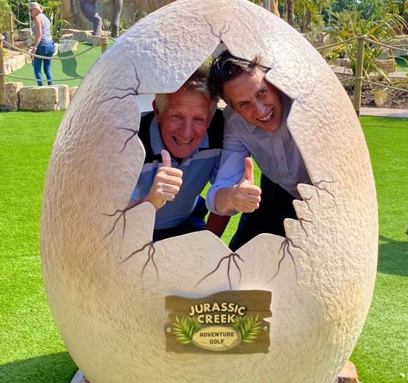 Sir Gavin has been a huge supporter of the award-winning 3 Hammers Golf Complex, where the Adventure Golf Course is located, and was more than happy to pull up his sleeves to play the course which includes a swing bridge, a Pterodactyl waterfall, a meandering river and 8 animated dinosaurs.