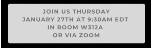 Thursday January 27th 9.30 a.m. EDT in Room W312A or via Zoom