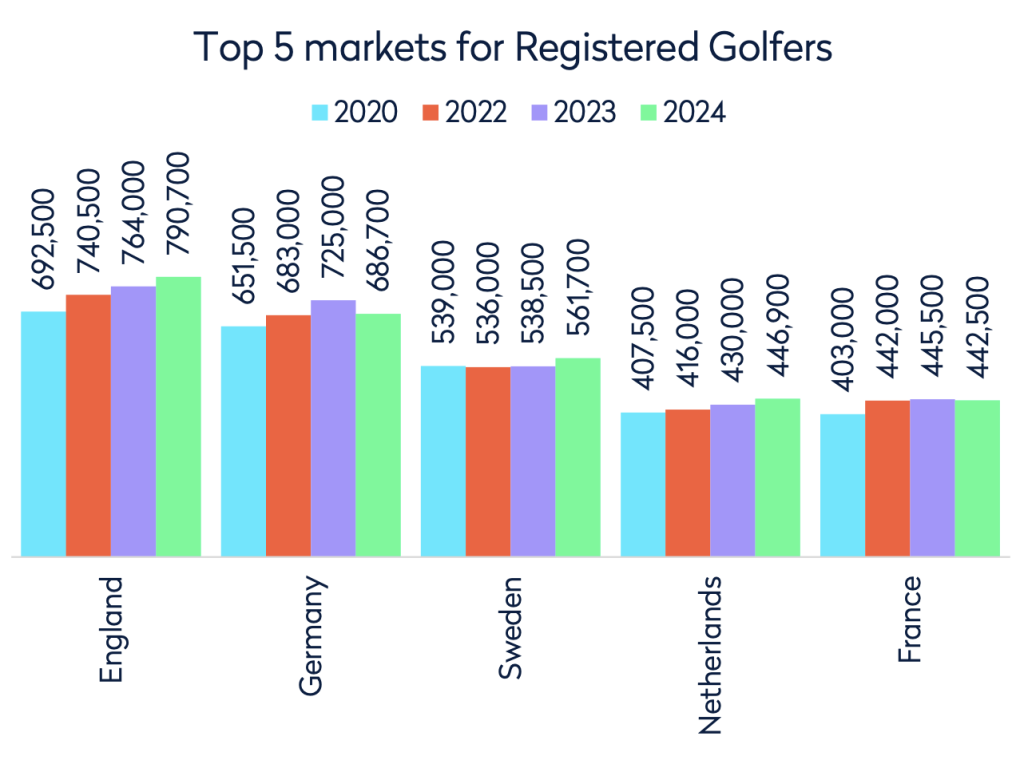 The number of registered golfers – those members of a golf club within their national association or affiliated through a direct subscription – has increased from 8.2 to 8.4 million and reflects a sustained growth from 7.4 million in 2020.