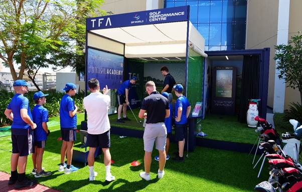 The Tommy Fleetwood Academy is leading the charge to inspire young people to take up the game of golf in Dubai thanks to a partnership with DP World, recycling a shipping container into a mobile golf studio that is taken to local schools to deliver get-into-golf sessions.