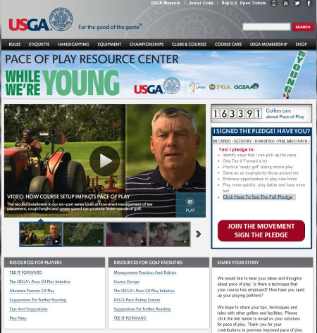 The videos build on the USGA’s “While We’re Young” campaign, which has created greater awareness of pace of play within the golf community. In addition to viewing the new educational videos, visitors to www.usga.org/whilewereyoung will be able to join the thousands of fellow golfers who have signed a pledge to take personal measures to improve pace of play. Once they have viewed all six videos, pledge signees will receive a certificate recognizing them as a USGA pace-of-play ambassador.