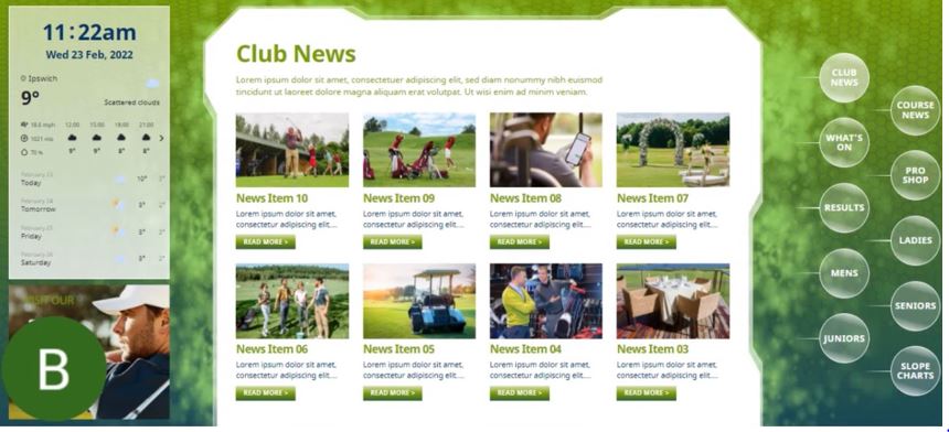 Golf Club Media (GC Media) have created a solution to challenge all clubs face: how to keep noticeboards up to date! GC Media’s solution is a 60” (152cm) interactive touchscreens (pictured) with cloud-based software, to streamline all important information for your members. All key club areas have their own sub sections populated with the latest information…with all information is ‘two touches away’ maximum.