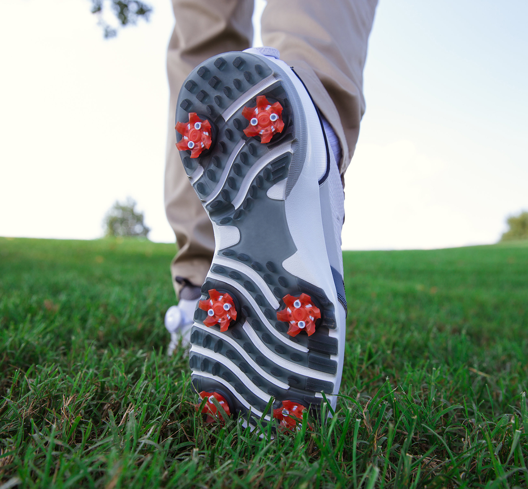 The key findings revealed thatfor golfers wearing replaceable cleats increased their average carry distance was 4.35 yards longer than with spikeless shoes; smash factor was better, and ball speed was faster and more consistent.