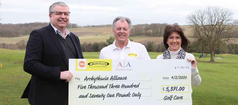 Specialist insurance company Golf Care has donated more than £5,000 towards placing defibrillators in golf clubs across the UK. This donation was made to the Arrhythmia Alliance, a heart rhythm charity, and a cheque was presented by Bernard Gallacher OBE, former Ryder Cup captain and Golf Care ambassador.