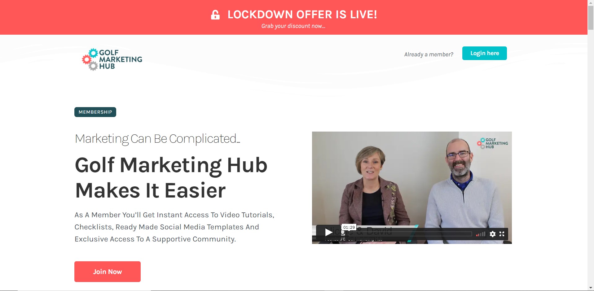 Following the announcement of restrictions on in-person coaching and the closure of golf courses, Golf Marketing Hub has announced a lockdown special for its online learning and marketing resource platform.