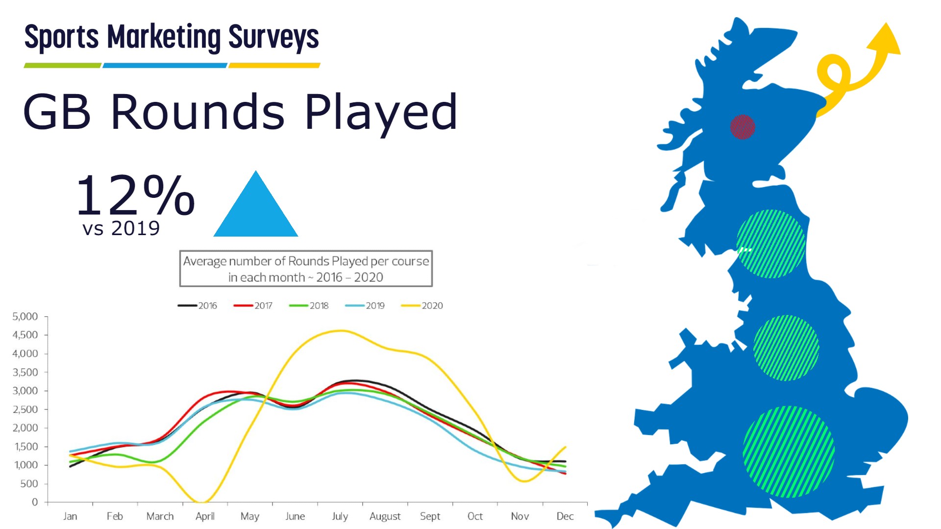 Sports Marketing Surveys already reported on a record third quarter, with rounds up by 59% compared to 2019. Now, the sports insights company can reveal that the 4th quarter followed the same pattern, culminating in growth of 41%. This was despite golf course closures during the November lockdown, as well as restrictions in certain areas under tier four rules.