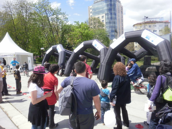 “After nets were deflated at 9 pm, one young girl couldn’t help crying. She wanted to try it so badly, but couldn’t get to the nets before time ran out, one of the staff worked with her without the net. A couple of balls got lost in Dnieper river… but everybody around were so happy for the girl – nice, emotional happy-ending of the day – great job, everyone concerned.”