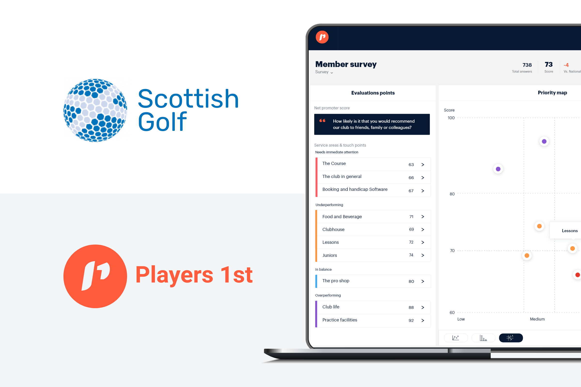 As the national governing body builds on the foundations of their digital transformation across many areas of the business, Players 1st was the obvious choice for Scottish Golf to be able develop a member experience survey to be able to offer their affiliated clubs to harness valuable member feedback.