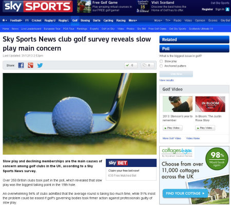 An overwhelming 94% of clubs admitted that the average round is taking too much time, while 91% insist the problem could be eased if golf’s governing bodies took firmer action against professionals guilty of slow play.