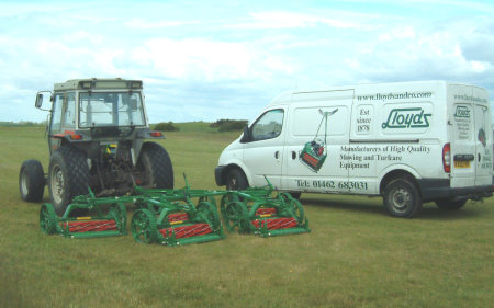 John approached Clive Nottingham of Lloyds who listened to John’s concerns regarding height control and clip rates, width and blade requirements. Clive produced a set of Leda quintuple gang mowers with 9-blade cylinders providing a more than acceptable clip rate of 50.6 clips per metre and infinitely variable height adjustor.