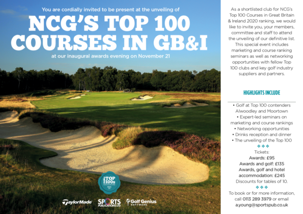 The NCG Top 100s awards will bring together NCG’s franchise of Top 100 products – the centrepieces of which are the ranking lists of the best courses in GB&I, England, Scotland, Ireland, Wales and Continental Europe.