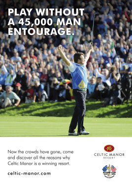Featuring the words “Play without a 45,000 man entourage” the ads draw reference to the 45,000 fans per day that packed into the resort during the Ryder Cup while reminding golfers they can now enjoy the peace and tranquility of the beautiful Usk Valley as they play their own round in the footsteps of the tournament heroes.