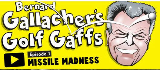 The first of five videos in the series is titled “Missile Madness” and features two golfers getting struck by a relentless flow of golf balls, whilst Gallacher is interviewed by TV cameras.