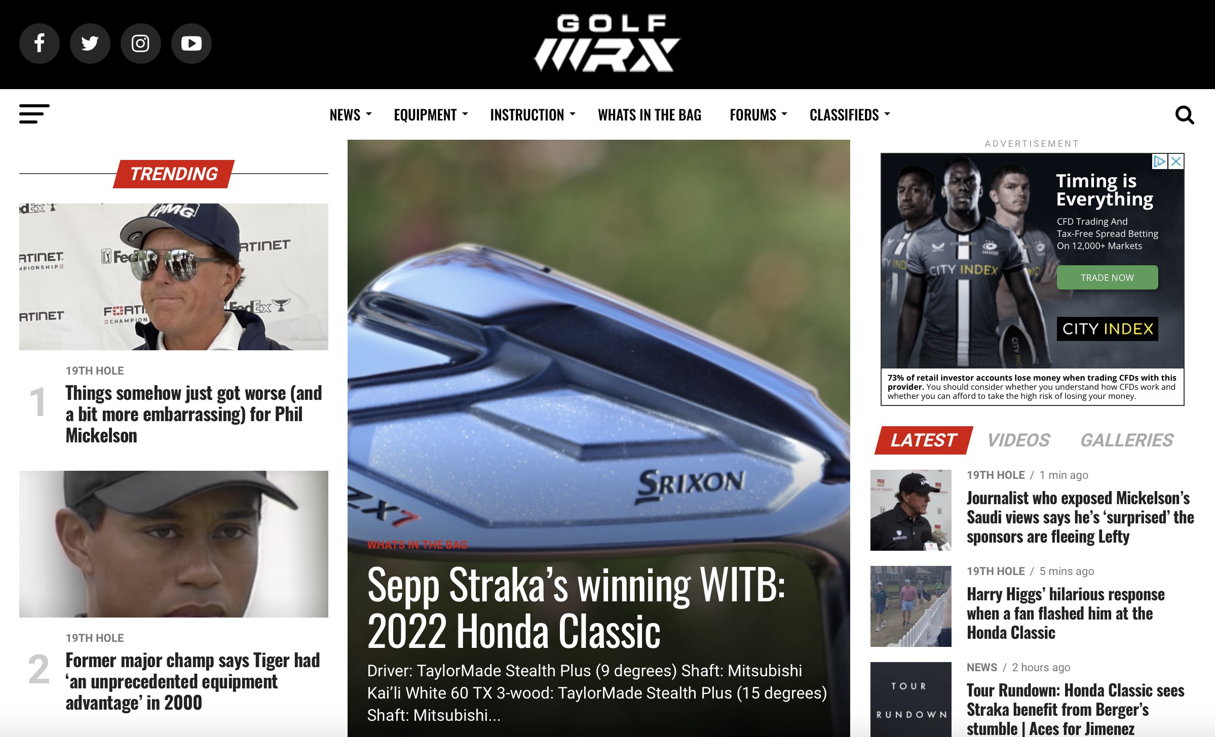 Founded in 2005, GolfWRX has had a long tradition of putting its audience first and working with the PGA TOUR will further its aim to provide the golf public with increased access to the in-depth and objective coverage its readers expect. Every month, millions of golfers and golf fans trust GolfWRX for their information, including an active user forum, breaking tour and original equipment manufacturer news throughout the golf season.