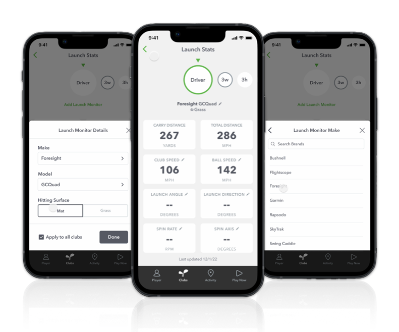 ● Launch Monitor Data Capture – phase 1 of Arccos’ work to combine on-course & off-course data allows players to enter session parameters plus 8 key characteristics that help fuel Arccos’ A.I., including ‘smart carry’ distances.