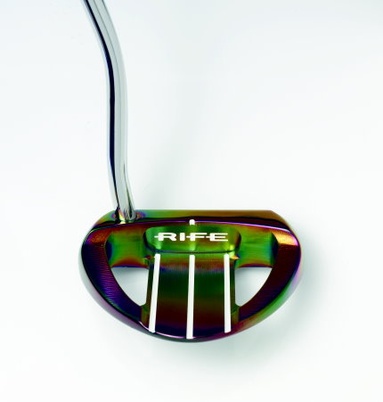 With RollGroove face technology for a quick, true roll and the Lie Aline custom fitting system, theBarbadosalready benefited from Rife’s unique technology. With the addition of the ‘Rainbow’ finish, each putter becomes one of a kind as the Ti plating system used to create the finish gives a unique result every time. Along with the aesthetic benefit the process also increases the putters’ resistance to wear and prevents any oxidization over time