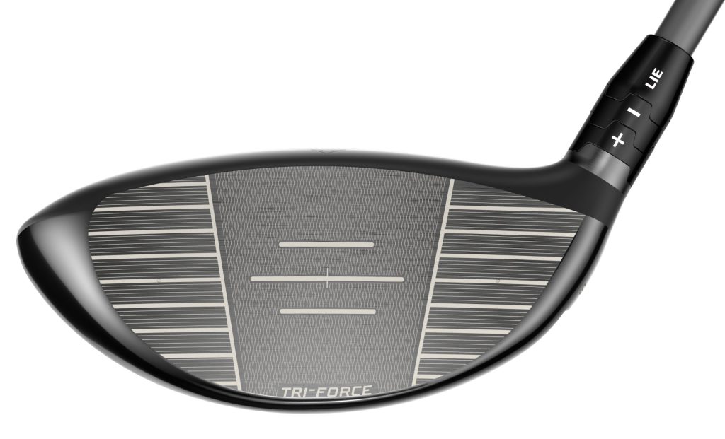 Engineered for speed, distance, and spin consistency – even on off-centre hits – made possible by a breakthrough Tri-Force Face that layers ultra-thin, high-strength titanium, poly mesh, and carbon fibre into a fully integrated speed system – a combination never before used in a mini driver face design.