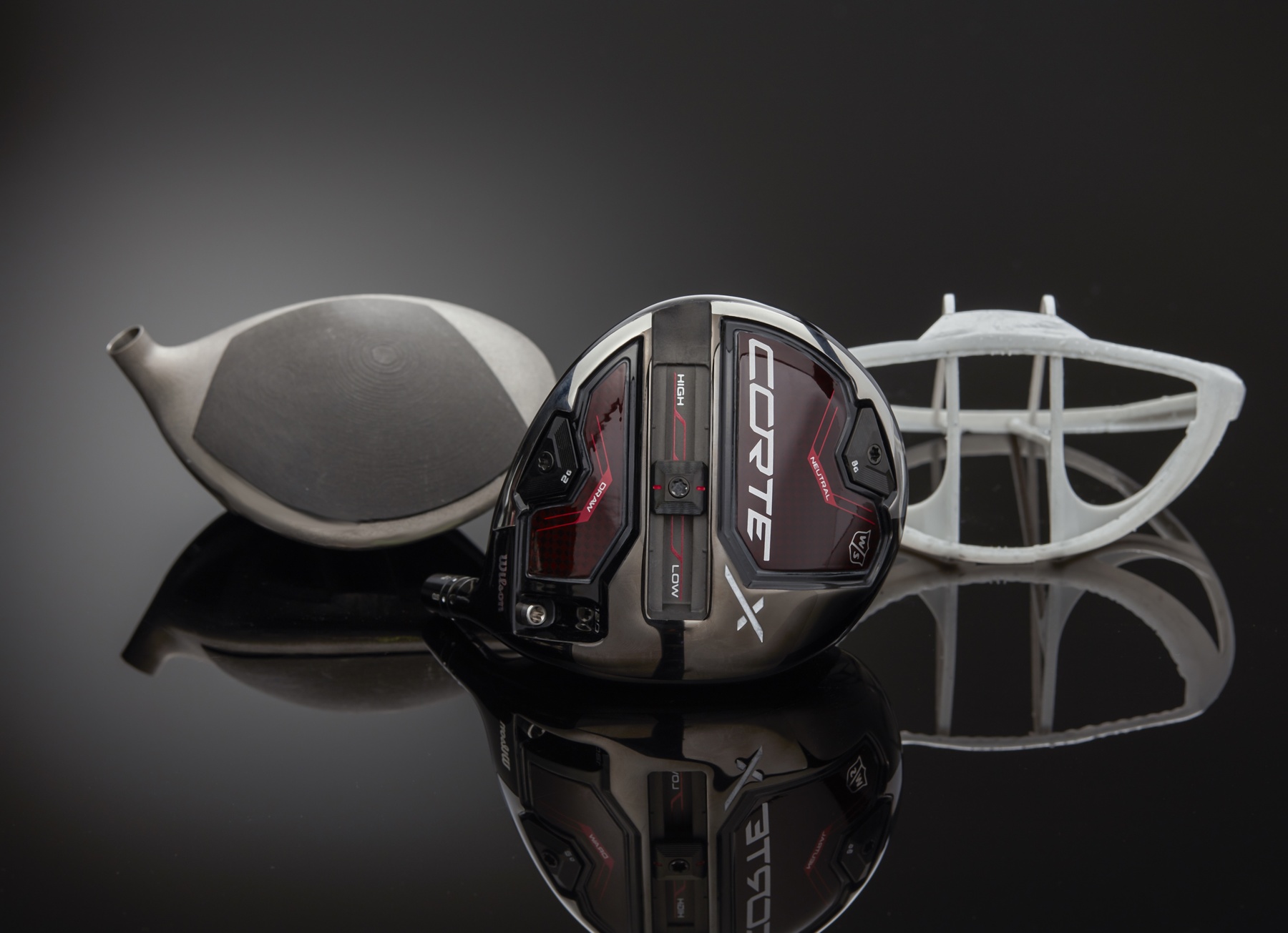 The Cortex, which is billed as Wilson’s most adjustable ever driver, features a titanium structure, carbon panels, a sliding adjustable sole weight, and interchangeable weights (2g and 8g) to provide precise weight distribution and adjustability. It also features Fast Cage Technology, which consists of a weight-tuned titanium internal structure with 44% of its surface area covered in carbon fibre panels. This Ti-Carbon construction allows for extremely precise distribution of weight and frees up additional weight for maximum adjustability.