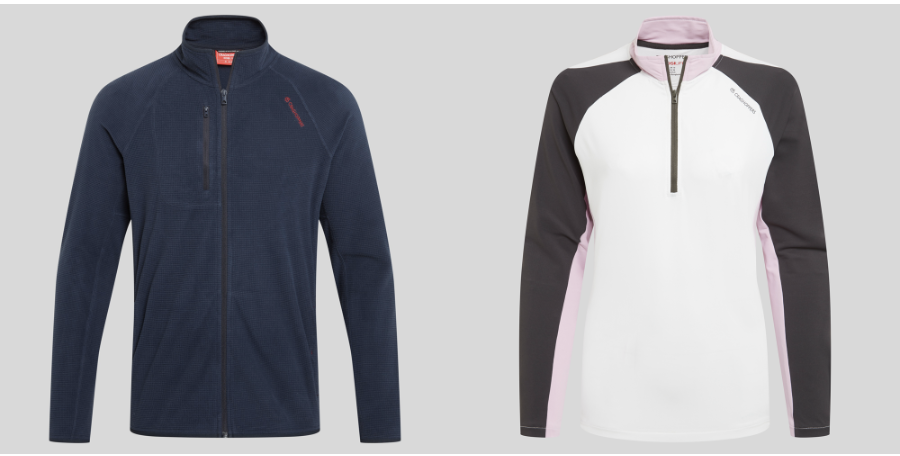The collection features two lightweight jackets – one in fleece and the other in stretch jersey fabric – and five tops – a long-sleeved zip neck, two short-sleeved polos, a long-sleeved polo and a long-sleeved base layer with a high neck. The tops offer UPF50+ sun protection and feature built-in odour elimination technology.